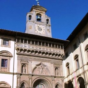 The Priori Palace dates back to the 14th century and is marked by a strong quadrangular tower—built in 1337, but altered several times, including the installation clock in 1468—and a large loggia with three orders. The medieval building has been unchanged and preserved. Only the façade along Via Ricasoli has been enriched with coats of arms of the mayor and commissioners. Inside, there are frescoes by Parri Spinello and Teofilo Torri, paintings by Giorgio Vasari and other artists from Arezzo, all works created between the 14th and 16th century. It is currently the municipal administration.