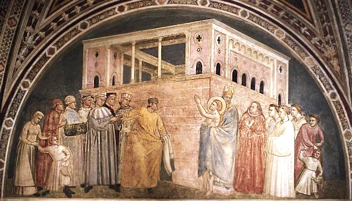 D’altra parte la città viveva un momento di straordinario sviluppo: commerci, artigiani, mercanti, banchieri. Dunque un’atmosfera fertilissima per sviluppare nuove idee e tendenze. Il contemporaneo Dante Alighieri descrive bene questa fase: “Credette Cimabue ne la pittura tener lo campo, e ora ha Giotto il grido, si che la fama di colui è scura”. Ciò fu confermato anche dal trattatista Cennino Cennini: “Giotto rimutò l’arte del dipingere di greco in latino e ridusse al moderno.” Insomma l’allievo superò il maestro…. scavalcando lo stile ancora un po’ “bizantino” della pittura ed elaborando rappresentazioni più naturali.