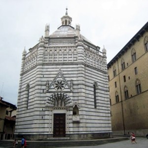 Situato di fronte al Duomo, fu progettato da Giovanni Pisano e costruito a metà del XIV° secolo. È considerato tra le massime espressioni del gotico toscano, in quanto riunisce in sé elementi fiorentini, pisani e senesi. È un’edificio a pianta ottagonale, sormontato da una pittoresca cupola, con decorazioni in marmo bianco e verde. All’interno conserva un fonte battesimale risalente al 1226, opera di Lanfranco da Como.